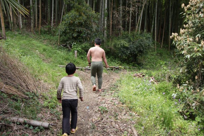 三男は寝間着にズボンを履き替えて山に向かいます。(山といっても家のすぐ横)